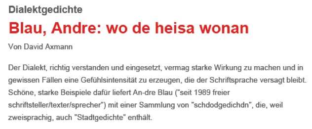 der dialekt ist dabei in eigener schreibweise herausforderndes stilmittel und zweck;